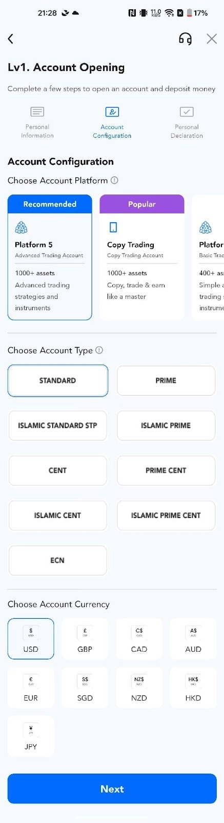 Choose an account type: Select an account that aligns with your needs and review trading terms.