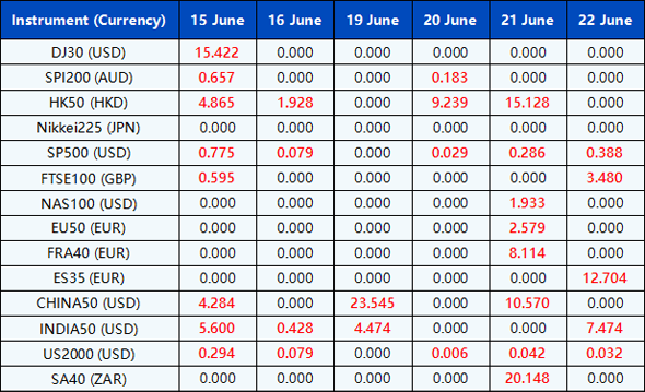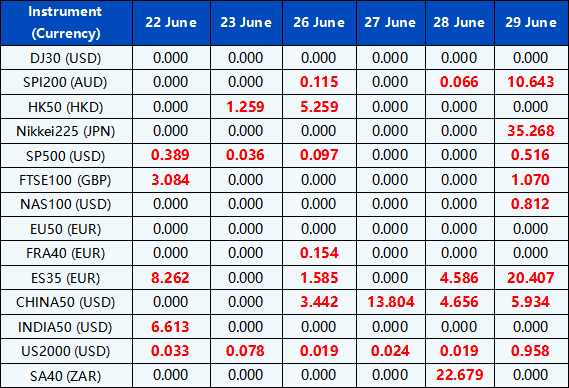 Please be advised that the dividends of the following index CFDs will be adjusted by upcoming ex-dividend dates. The comment for trading index CFDs will be in the following format “Div&<Product Name>&<Net Volume>” which show in the balance after the close of the day before the dividend payment date.