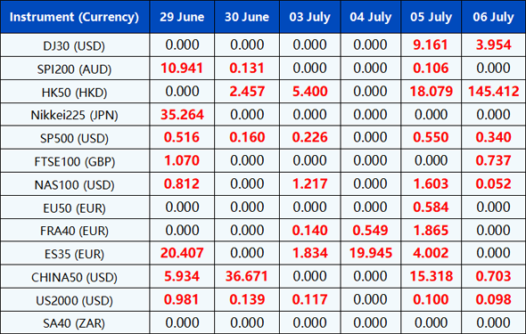 Please note the above data are subject to changes. Please refer to MT4/MT5 for details.
