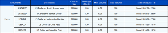Please note the above data are subject to changes. Please refer to MT4/MT5 for details.