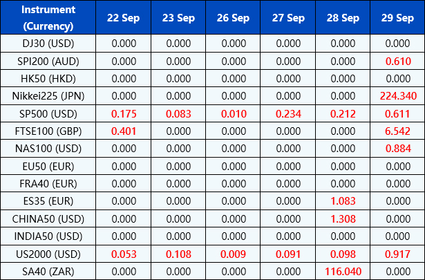 Please be advised that the dividends of the following index CFDs will be adjusted by upcoming ex-dividend dates. The comment for trading index CFDs will be in the following format “Div&<Product Name>&<Net Volume>” which show in the balance after the close of the day before the dividend payment date.
