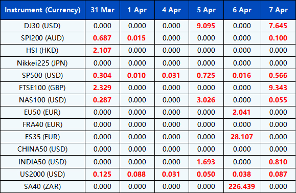 Please note the above data are subject to changes. Please refer to MT4/MT5 for details.