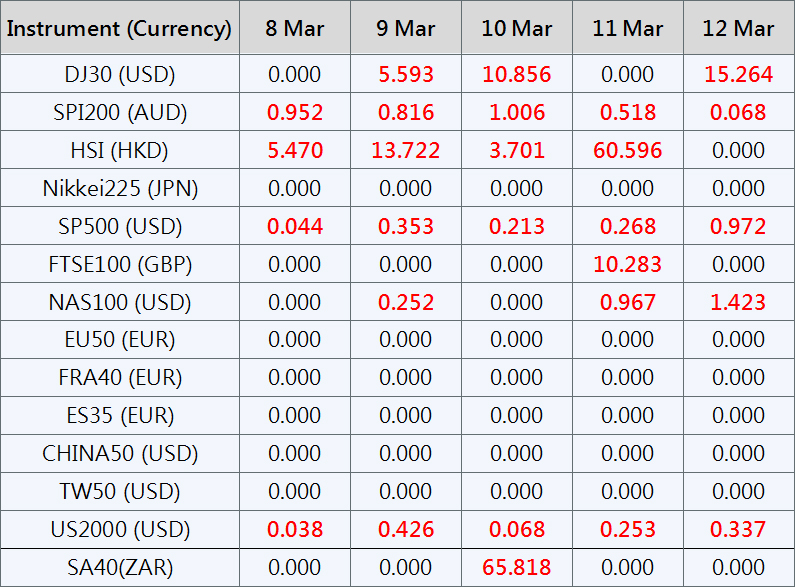 Please note that the above data are subject to changes. Please refer to MT4/MT5 for details.