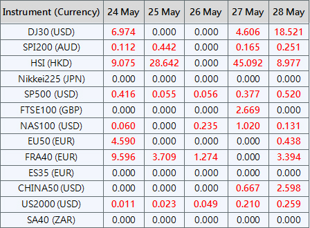 Please be advised that the dividends of the following index CFDs will be adjusted by upcoming ex-dividend dates. The comment for trading index CFDs will be in the following format “Div&<Product Name>&<Net Volume>” which show in the balance after the close of the day before the dividend payment date.