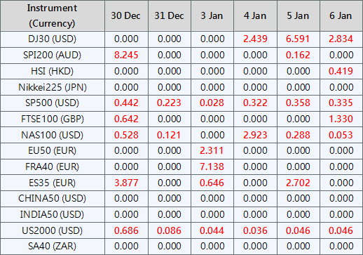 Please be advised that the dividends of the following index CFDs will be adjusted by upcoming ex-dividend dates. The comment for trading index CFDs will be in the following format “Div&<Product Name>&<Net Volume>” which show in the balance after the close of the day before the dividend payment date.