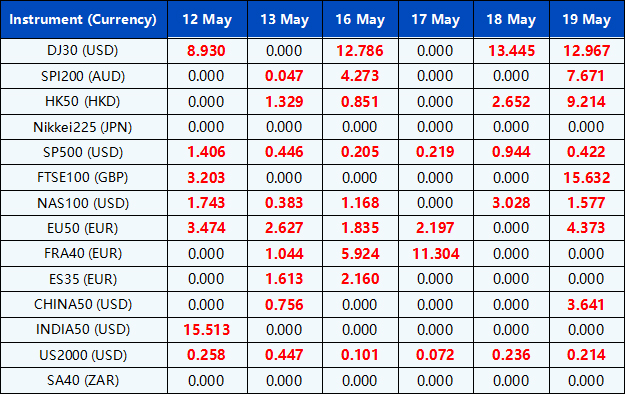 Please note the above data are subject to changes. Please refer to MT4/MT5 for details.