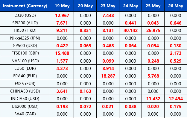 Please be advised that the dividends of the following index CFDs will be adjusted by upcoming ex-dividend dates. The comment for trading index CFDs will be in the following format “Div& <Product Name>&<Net Volume>”which show in the balance after the close of the day before the dividend payment date.