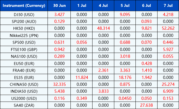 Please be advised that the dividends of the following index CFDs will be adjusted by upcoming ex-dividend dates. The comment for trading index CFDs will be in the following format “Div& <Product Name>&<Net Volume>”which show in the balance after the close of the day before the dividend payment date.