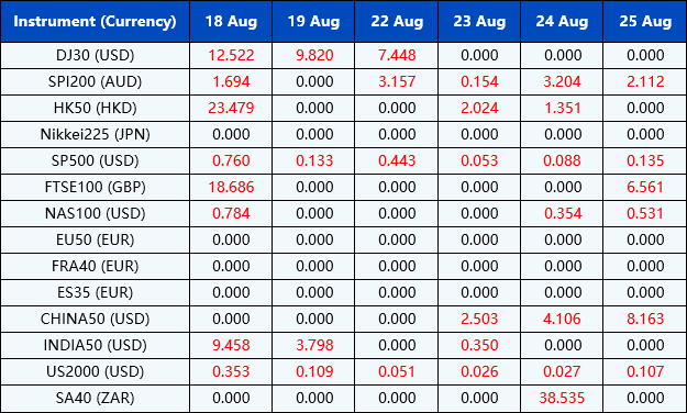 Please be advised that the dividends of the following index CFDs will be adjusted by upcoming ex-dividend dates. The comment for trading index CFDs will be in the following format “Div&<Product Name>&<Net Volume>” which show in the balance after the close of the day before the dividend payment date.