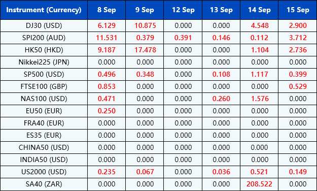 Please be advised that the dividends of the following index CFDs will be adjusted by upcoming ex-dividend dates. The comment for trading index CFDs will be in the following format “Div&<Product Name>&<Net Volume>” which show in the balance after the close of the day before the dividend payment date.