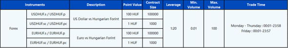 Please note that the above data are subject to changes. Please refer to MT4/MT5 for details.