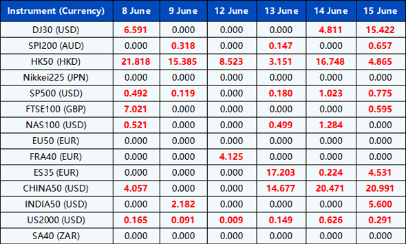 Please note the above data are subject to changes. Please refer to MT4/MT5 for details.