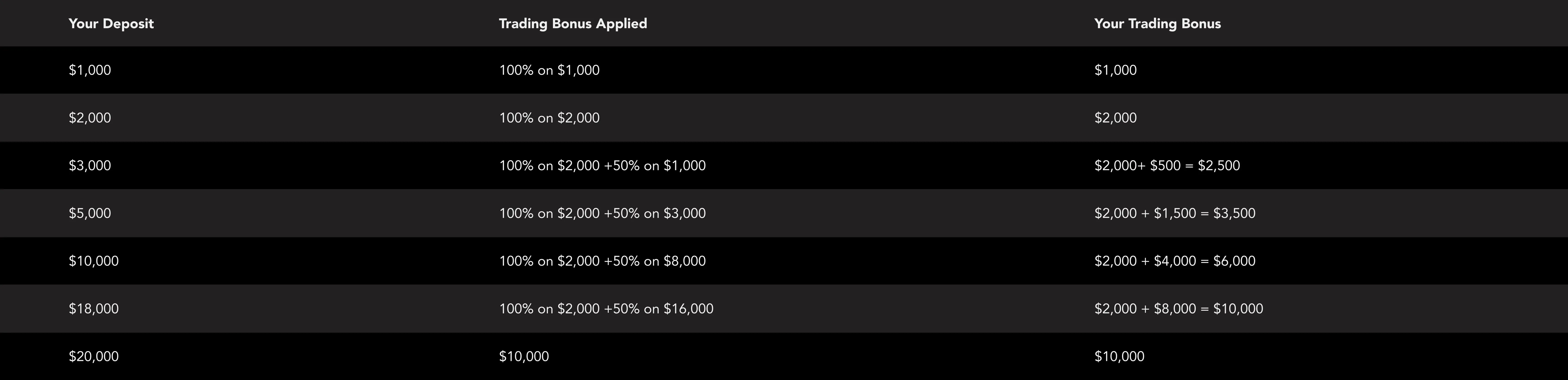 8.Eligible Clients (both new and existing clients), who meet the criteria set forth herein are able to receive trading bonuses, equal to: